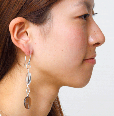 Gstoneのファッションジュエリーに関するご希望・ご要望は「お問い合わせ」からどうぞ! このピアスはクリアークオーツの13mmx20mmオーバルコインとスモーキークオーツを2つ重ねたデザインです。