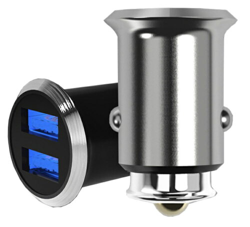 ■商品仕様 サイズ:約21mm×41mm 材質:アルミ合金(本体)、銅(接点部) 入力:12V/24V マイナスアース車専用 出力:5V 3.1A USBポート数:2ポート カラー:ブラック・シルバー ■適合車種 12V車・24V車 ※マイナスアース車専用となります。