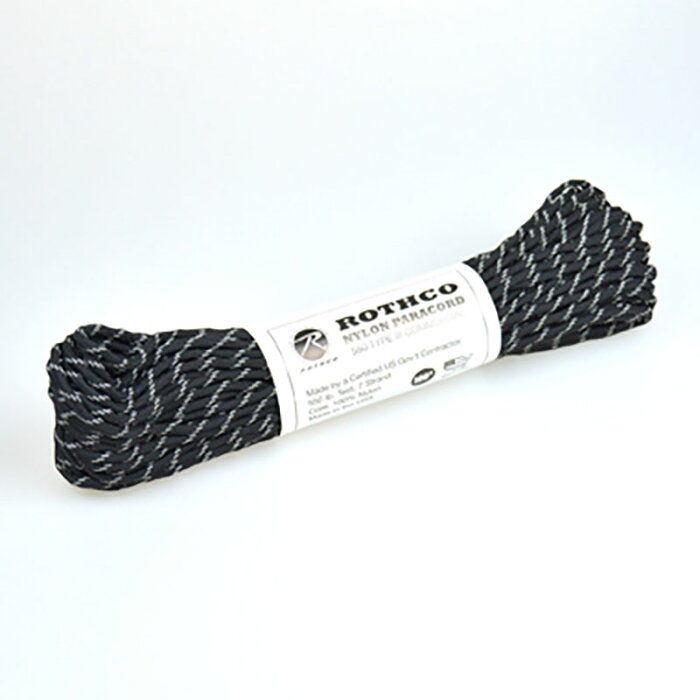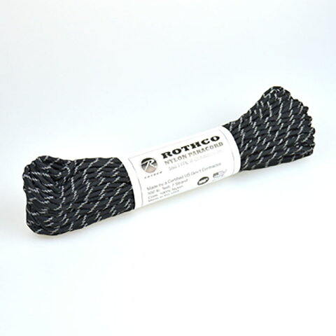 ROTHCO ロスコ ナイロンパラコード リフレクティブブラック 30m(100ft) 反射素材使用 / ブッシュクラフト 父の日 プレゼント ソロキャンプ 登山 耐荷重250Kg 【商品キーワード】 ★