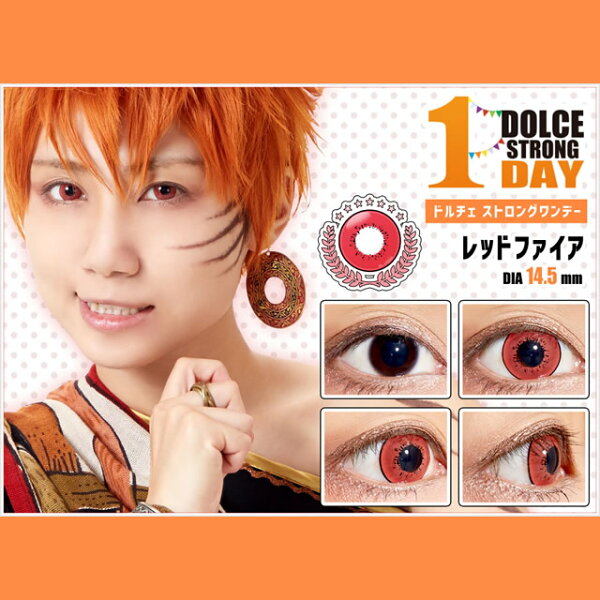 処方箋不要で買えるカラコン◆商品名:ドルチェ ストロングワンデー レッドファイア◆モデル:山本 太陽◆入数:1箱6枚入◆使用期間:1日◆DIA:14.5mm◆BC:8.6mm◆含水率:38.5%◆非視力補正用コンタクトレンズ(度なしカラコン)◆医療機器承認番号:22700BZX00203000◆製造国:◆製造販売元:◆販売元:商品の性質上開封後の返品および交換はご遠慮下さい。